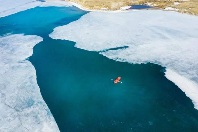 沿環(huán)湖公路前行,眼前的湖面也不斷變幻著“表情”,一會(huì)兒白雪皚皚四周沉寂,一會(huì)兒冰面龜裂張力無(wú)窮。一會(huì)兒是薄冰縷縷、波光粼粼,一會(huì)兒又是水平如鏡,雪山、白云倒映其中,形成一幅靜止的畫面,令人分不清哪里是水,哪里是天。