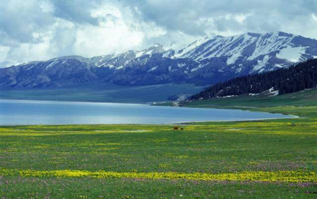 初夏時(shí)節(jié)的賽里木湖,清澈蔚藍(lán)的湖水、綠意盎然的草原、滿山怒放的鮮花,構(gòu)成了一幅優(yōu)美和諧的天然畫卷。