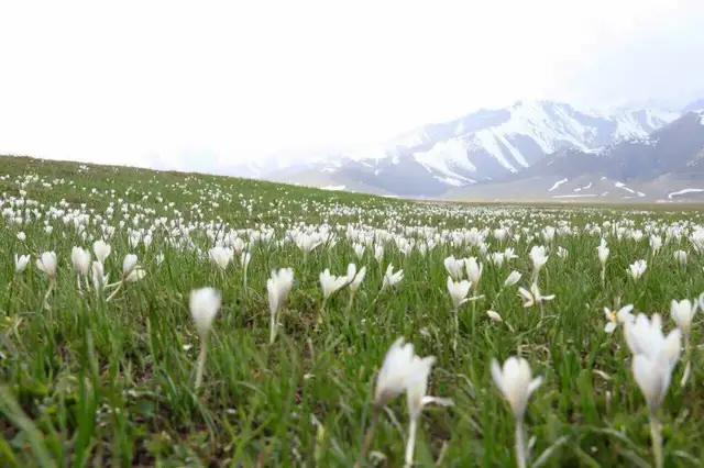 賽里木湖畔山花眾多,因海拔較高,春天也姍姍來(lái)遲。4月末,從環(huán)湖公路進(jìn)入西海草原,順著蜿蜒的山泉小溪,便可尋到成片開(kāi)放的頂冰花。