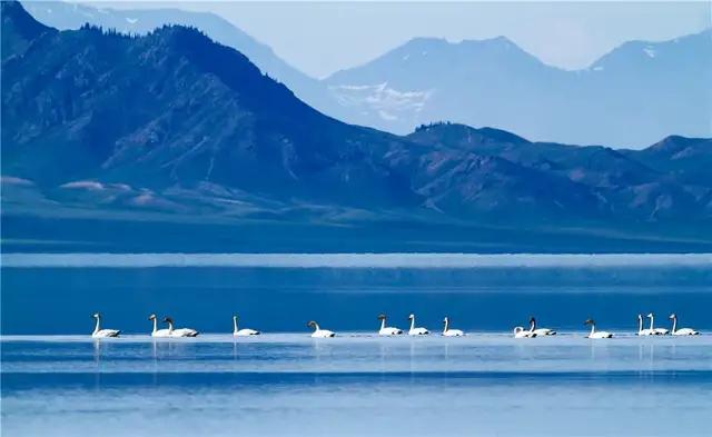 賽里木湖的湖面藍(lán)得迷人,藍(lán)得妖艷,引得幾只天鵝也留戀其中。那天鵝在湖面上的身姿,真的會(huì)讓人一見(jiàn)鐘情,再見(jiàn)傾心,三見(jiàn)傾世難忘,然后沉溺其中,不愿打破,難怪柴可夫斯基的《天鵝湖》經(jīng)久不衰。