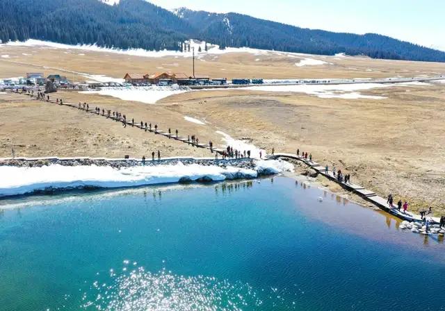 賽里木湖最佳游玩季節(jié)是每年的六七月份,此時(shí)湖邊草原上開(kāi)滿了各色的野花,映照著雪山下的蔚藍(lán)湖水,是不可錯(cuò)過(guò)的盛景。每年7月底至8月初,當(dāng)?shù)孛晒抛搴凸_克族牧民會(huì)在這舉行那達(dá)慕盛會(huì)。10月底牧民會(huì)遷出這里,不過(guò)冬季銀裝素裹的景色也非常美麗。