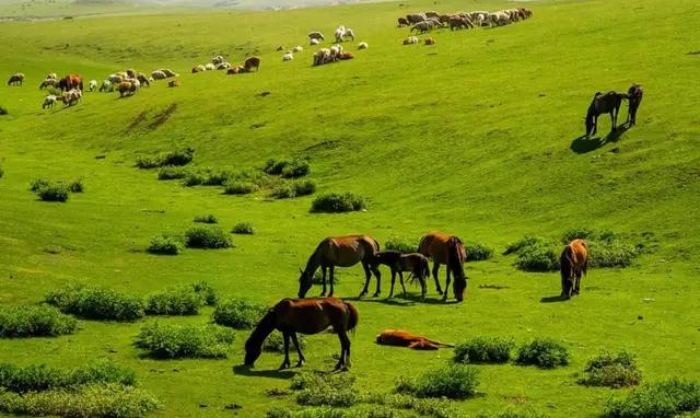 因而水草豐美,牛羊成群