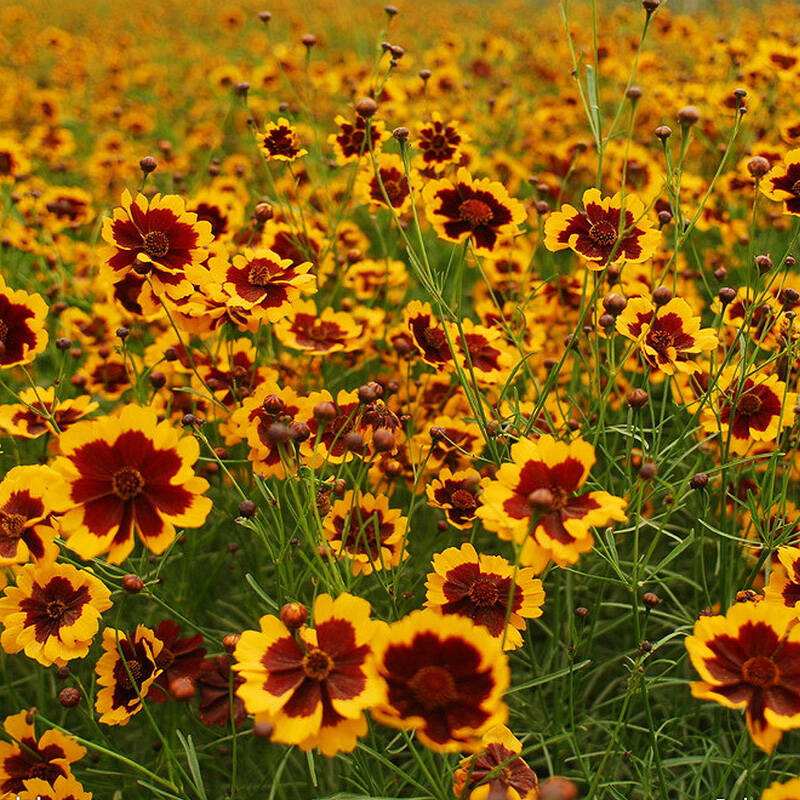 雪菊,學(xué)名兩色金雞菊(Coreopsis tinctoria)、蛇目菊,為菊科金雞菊屬(Coreopsis)多年生草本植物,在我國新疆尤其是和田地區(qū)、云南部分地區(qū)有一定規(guī)模栽培。因其能夠生長在海拔3000m以上的新疆昆侖山積雪高山區(qū)域而得名“雪菊”。由于湯色紅,亦名血菊。