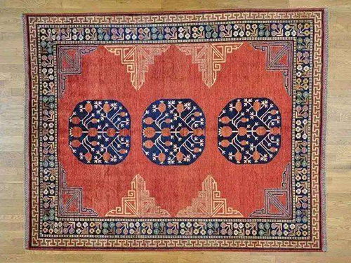 和田地毯具有鮮明的民族特點(diǎn)和濃厚的地方色彩,被稱(chēng)為獨(dú)具一格的“東方式”地毯。其特點(diǎn)是:多層邊框,幾何圖形內(nèi)填人豐富而多變的紋飾,結(jié)構(gòu)嚴(yán)整而富有韻律,形式多樣而富有生活氣息。其品種有鋪毯、掛毯、座墊毯、拜墊毯、褥毯等。和田地毯圖案別致,獨(dú)具風(fēng)格,色調(diào)高雅,在圖案結(jié)構(gòu)上充分體現(xiàn)了東方民族的藝術(shù)特色,尤其是維吾爾族的藝術(shù)特色。多以植物花、果、枝葉及饒有風(fēng)趣的各類(lèi)動(dòng)物為紋樣的基本造型、加以擴(kuò)張變型,并輔以有變化的幾何形紋理而構(gòu)成。圖案設(shè)計(jì)題材廣泛,內(nèi)容豐富,按圖案內(nèi)容和形式可分為石榴花、蠟花式、波浪式、波斯式、散點(diǎn)排列式、洋花式、五枝花式和博古式八大類(lèi),此外,還有人物、花鳥(niǎo)和風(fēng)景掛毯,各具特色。