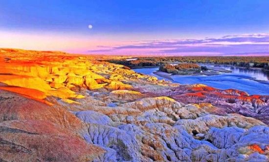 激猛的河流沖擊以及狂風(fēng)侵蝕,形成了北岸的懸崖式雅丹地貌,河岸巖層抗風(fēng)化能力強(qiáng)弱不一,輪廓便會參差不齊,而巖石含有礦物質(zhì)的不同,又幻化出種種異彩,因此得名“五彩灘”。