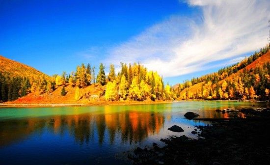 喀納斯湖外形呈月牙,湖區(qū)景觀主要有駝頸灣、變色湖、臥龍灣等;生長有哲羅鮭、細(xì)鱗鮭等珍稀魚類。